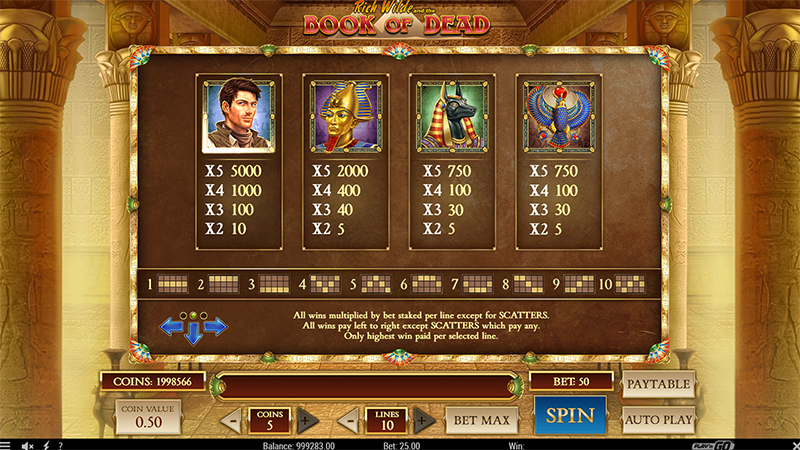 Außerdem agiert das Buch der Toten in diesem Slot als Wild-Symbol und Scatter-Symbol. Erscheint das Buch auf den Walzen, ersetzt es alle anderen Symbole und sorgt für eine bessere Gewinnkombination.